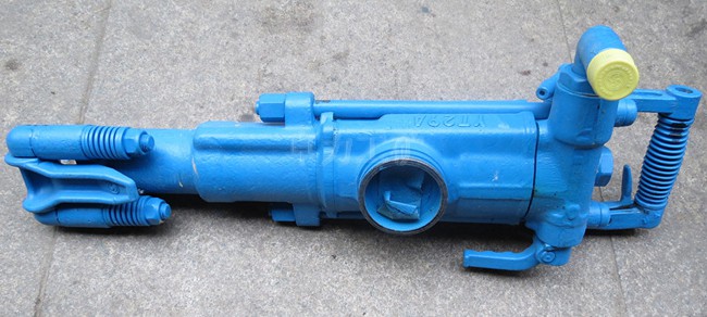 YT24型氣腿式鑿巖機,是一種新型高效的鑿巖機械。廣泛應(yīng)用于礦山巷道掘進及各種鑿巖作業(yè)中鑿巖爆破,是冶金、煤炭、鐵路、交通、水利建設(shè)及國防石方工程不可缺少的重要機具。YT24型鑿巖機的適用范圍較廣,最適用于在中硬或堅硬(f=8-18)巖石上鑿巖水平和傾斜炮孔,也可垂直向上鑿頂板上的錨桿孔。炮孔直徑一般為34-42毫米,有效經(jīng)濟的鉆孔深度可達5米。本機即可以根據(jù)巷道斷面大小與FT140BD型短氣腿或FT140BC型長氣腿配套使用,也可以裝在鉆車或鉆架上工作。