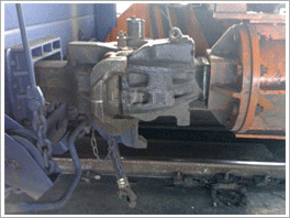 翻車機(jī)推車器由液壓馬達(dá)控制,雙側(cè)推車臂推送車輛踏面。推車器推送車輛時(shí)先低速后