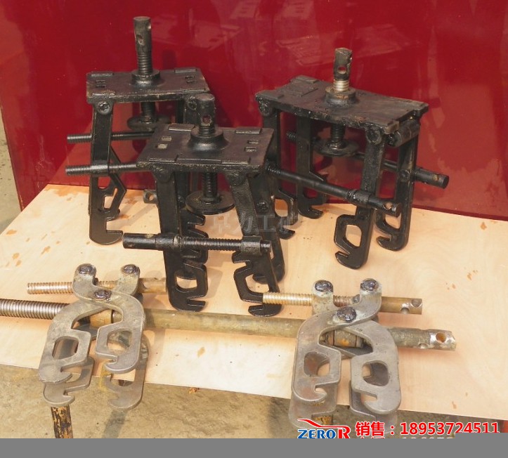 在井下條件復(fù)雜,頂板活動(dòng)頻繁的情況下,一直延續(xù)使用著傘型臨時(shí)支護(hù),在長期使用過程中,發(fā)現(xiàn)傘形臨時(shí)支護(hù)弧度與施工巷道的弧度格格不入,傘形支護(hù)的受力點(diǎn)只局限于弧度中心點(diǎn),支撐點(diǎn)也只局限于一個(gè)螺旋柱桿,另外其體積大,分量重,既不便于搬動(dòng),又不便于置放工作區(qū)域,很大程度上影響了工作中的平行作業(yè)和交叉作業(yè),在安全上造成了較大隱患。為此,該隊(duì)結(jié)合實(shí)際情況,集思廣益,積極改進(jìn)支護(hù)方式。他們利用圓鋼、厚鋼板、螺絲桿、螺帽等材料自行設(shè)計(jì)了一組前探梁卡子,可以直接固定在錨桿上,并配合3寸鋼管穿插到前探梁卡子中間,轉(zhuǎn)動(dòng)頂絲桿把手,緊緊卡死鋼管,然后再延伸到前頭的鋼管上鋪設(shè)1米左右的方格金屬網(wǎng)并使其緊貼巖壁。