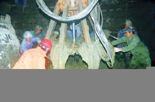 3.抓巖機(jī)下井前要做試吊試驗(yàn)并由專(zhuān)人掛鉤,確認(rèn)無(wú)誤后方可下放。下放前通知絞車(chē)司機(jī)開(kāi)慢車(chē),絞車(chē)司機(jī)和井口信號(hào)工精神要高度集中,封口盤(pán)井蓋門(mén)處要設(shè)專(zhuān)人把鉤,大抓在到達(dá)井下時(shí),三層吊盤(pán)的喇叭口處均設(shè)專(zhuān)人把鉤,防止碰吊盤(pán)。