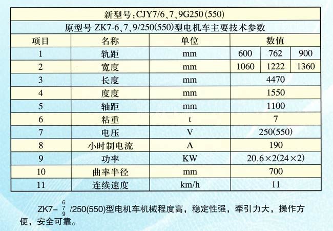 7噸窄軌架線式工礦電機(jī)車車參數(shù)