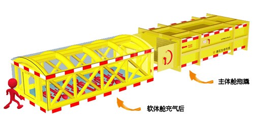 現(xiàn)國內(nèi)礦山安全避險無很好的措施。為在很好保護災(zāi)變發(fā)生后人員安全,設(shè)計一種鋼結(jié)構(gòu)救生艙,艙內(nèi)配置飲用水和食物。用于礦難發(fā)生后的緊急避難,放置于礦山井下作業(yè)面附近。在遇險人員無法撤離危險區(qū)域時可以迅速躲進救生艙,救生艙無需外部能源補給,就可以為幸存人員躲避有毒有害氣體、濃煙煙塵及氧氣缺乏等危害,提供一段時間的生命生存保障。對于挽救井下幸存人員的生命具有積極而重大的意義。