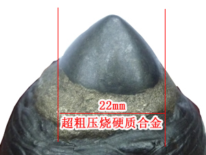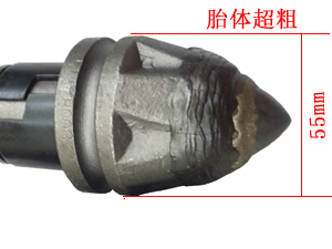 優(yōu)勢(shì)七: 胎體超粗,胎體最大直徑為55mm, 大大增加截齒的耐磨性。 |