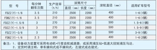 翻車機又名翻罐籠,其主要規(guī)格為:FDZ(B)Z(Y)-1(1.5)/6(9)。它是礦山和煤礦使用固定式礦車運輸中轉(zhuǎn)的主要卸料設備,具有生產(chǎn)效率高、使用簡單、安全可靠等特點!