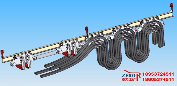 和水管沿著巷道吊掛和移動(dòng)。該裝置避免了井下電纜凌亂擺放,減少了電纜的占用空間與電纜的移動(dòng)次數(shù),避免了人工